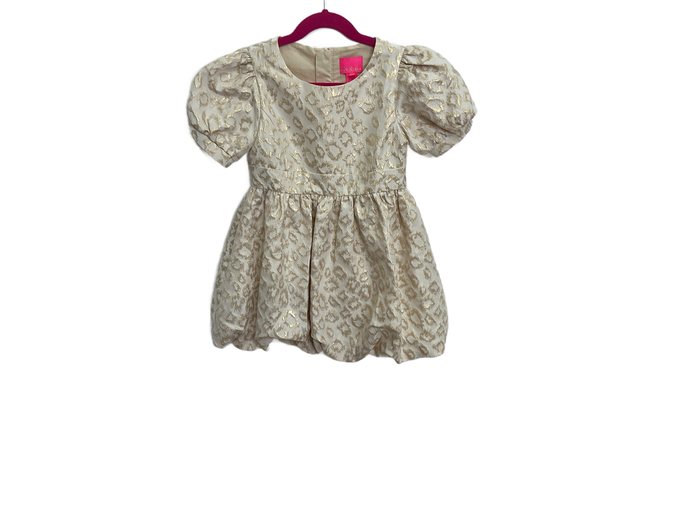 Lilly Pulitzer Girls Mini Moiraine Party Dress Gold Dazzle Leopard Jacquard Size 4