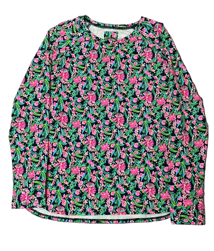 Authentic Lilly Pulitzer® item. Carefully curated and inspected, with 100% authenticity guaranteed by Gatorlillys. Lilly Pulitzer NWT - Blythe Pullover UPF 50 - Low Tide Navy Garden Variety - Size XL WG1414
